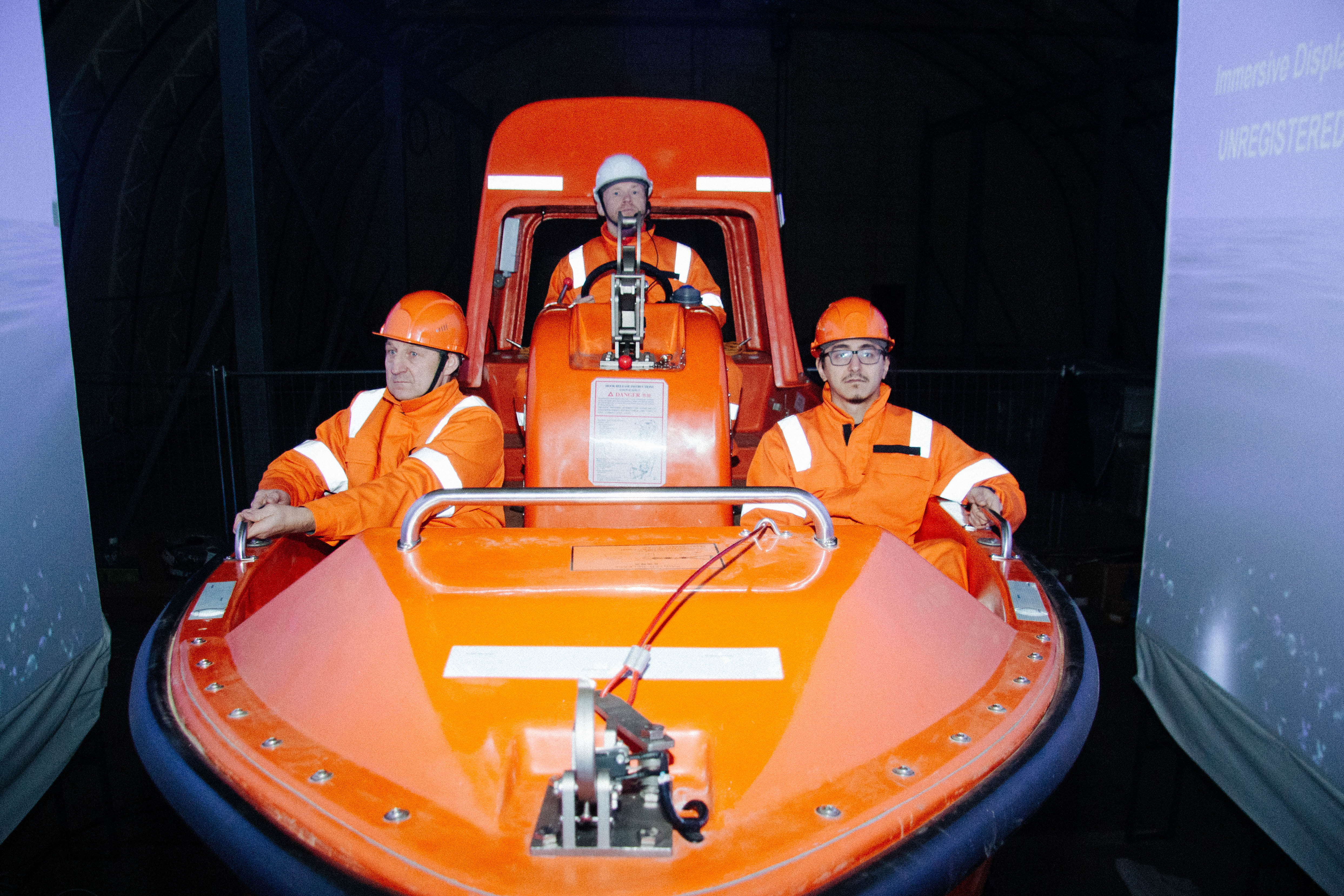 Before launching, the dynamic platform performs movements that simulate the movement of a vessel on the waves.